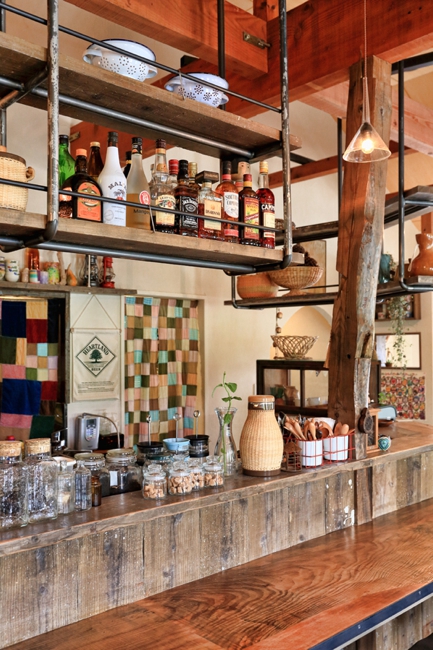 大きなオリーブの木の木漏れ日に導かれて入る店内は、癒しの空間。